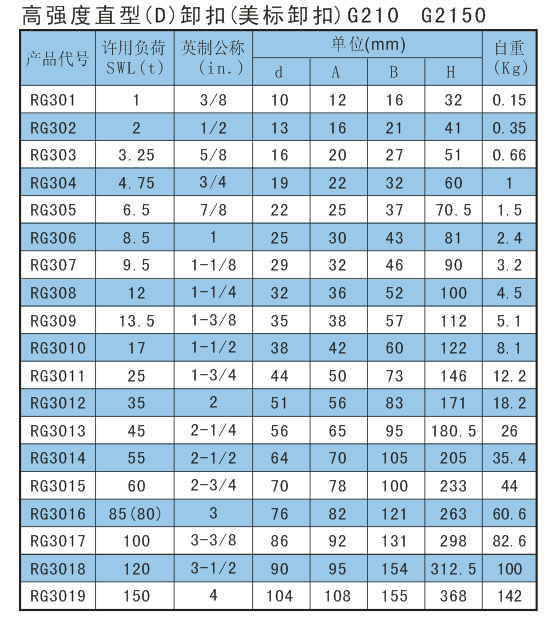 >高强度直型(D)卸扣(美标卸扣)